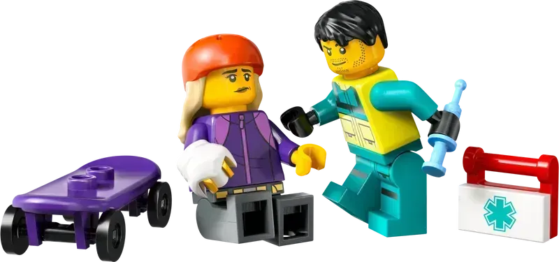 - مجسم صغير من اثنين: مجموعة من اثنين من الشخصيات المصغرة: سائق سيارة إسعاف ومريض. Met deze minifiguren kun je eindeloze verhalen bedenken.