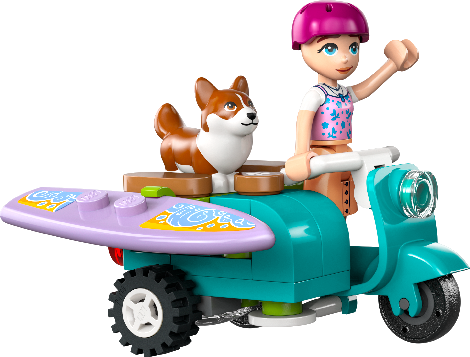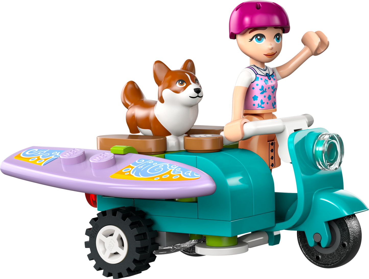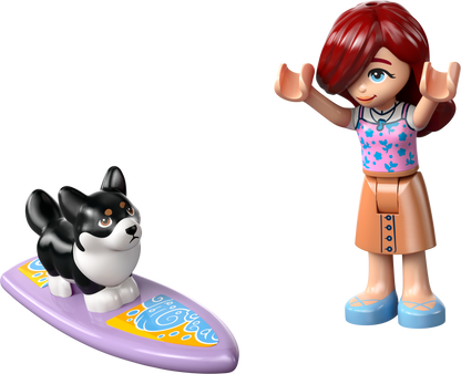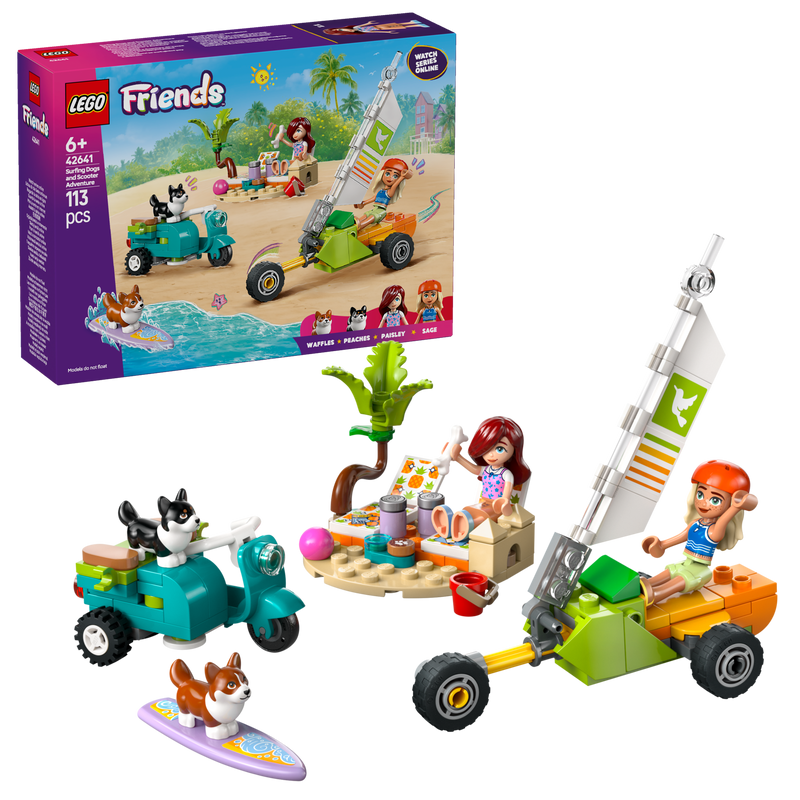 Discover the best adventures with the LEGO Friends 42641 Surf & Scooter Fun with the Dogs set!