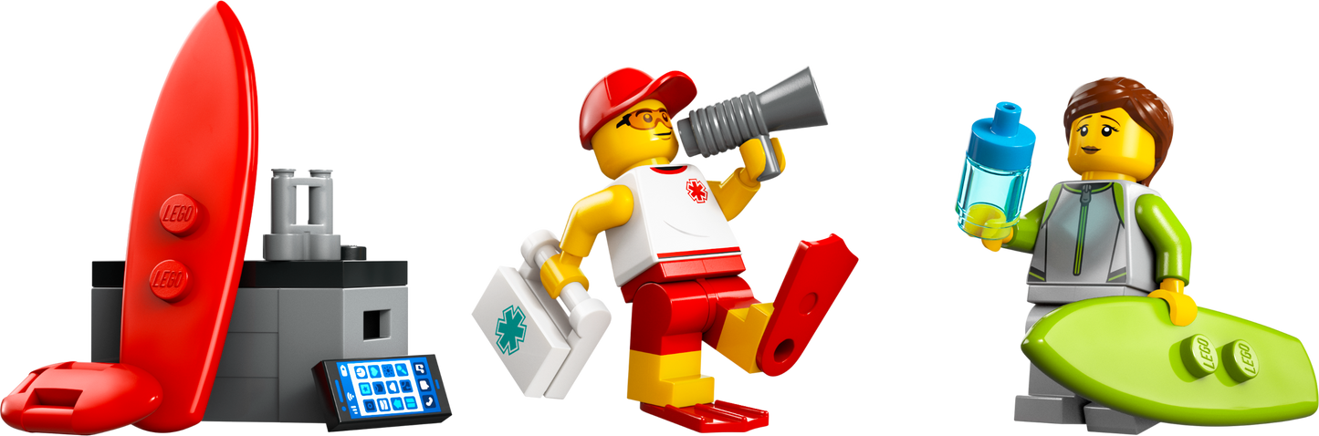 This set is perfect for young adventurers who love water and rescues. Build a cool rescue vehicle complete with a storage compartment for rescue equipment, a fold-out ladder and a water ski. With the included lifeguard and swimmer minifigures, you can plan endless rescue missions.